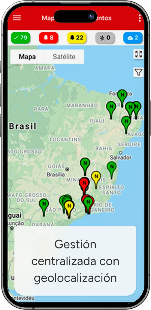 Acceso 24 horas, 7 días a la semana, vía aplicación móvil. Monitoreo, gestión y mantenimiento con extrema rapidez.