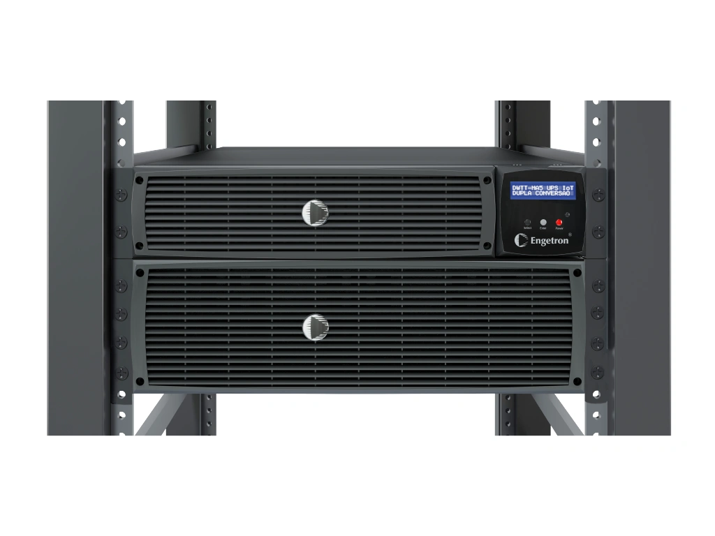 Energia senoidal pura e estabilizada com paralelismo ativo (N+1) ou Dual Bus em rack 19”.